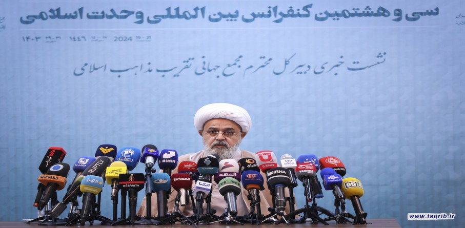 المؤتمر الصحفي للأمين العام لمجمع التقريب الدكتور شهرياري حول مؤتمر الوحدة الدولي الـ 38
