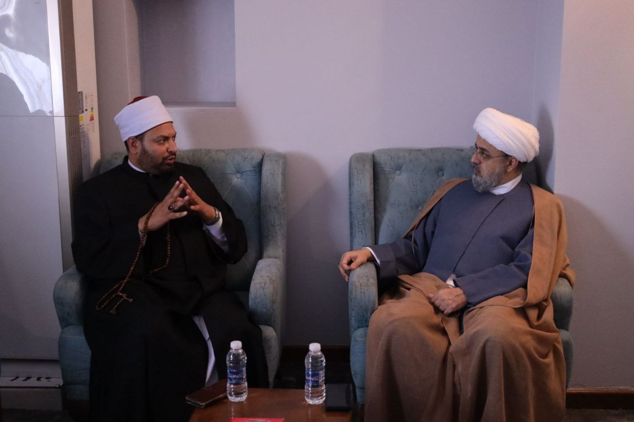 حجة الاسلام شهرياري يلتقي ممثل الازهر الشريف خلال مؤتمر الوحدة في بغداد