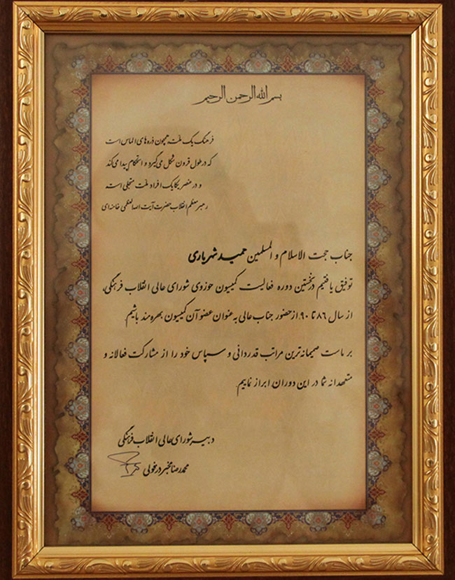 تقدیر دبیر شورای عالی انقلاب فرهنگی برای عضویت در کمیسیون حوزوی شورای عالی انقلاب فرهنگی