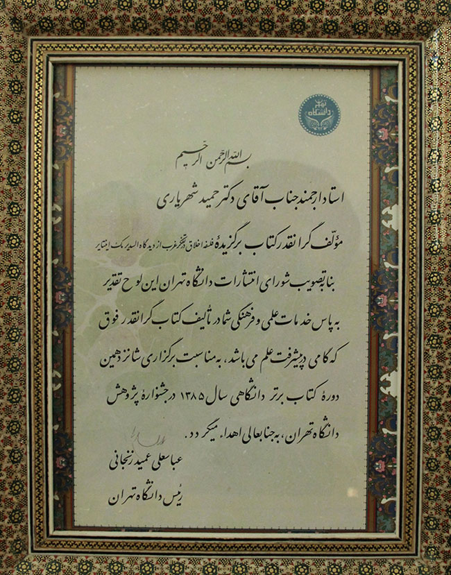 تقدیر رییس دانشگاه تهران از کتاب فلسفهً اخلاق در تفکر غرب