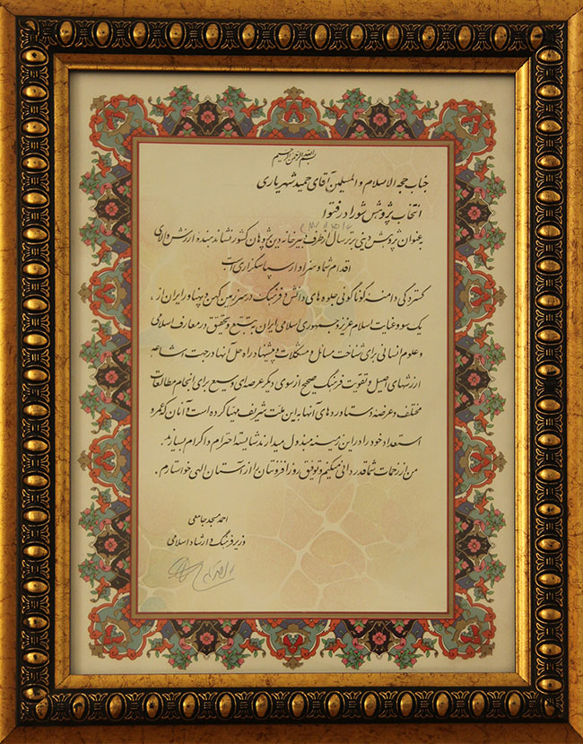 تقدیر وزیر ارشاد از پژوهش شورا در فتوا به عنوان پژوهش دینی برتر سال
